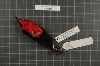 | Keywords: Naturalis Biodiversity Center - RMNH.AVES.24104 2 - Leistes militaris militaris (Linnaeus, 1758) - Icteridae - bird skin specimen.jpeg artwork Dimensions artwork Document type Icteridae Leistes Individual count 1 Infraspecific epithet militaris Infraspecific rank Institution Naturalis Kind of unit artwork Kind of unit specimen skin Life stage Surinam Republiek Medium artwork Nomenclatural code Occurrence ID page Other fields Other versions artwork Permission license Naturalis donation CC-0 Publication location Scientific name Leistes militaris militaris Linnaeus 1758 Scientific name authorship Linnaeus 1758 male Source url http //bioportal naturalis nl Specific epithet militaris State or province Subject keywords artwork Subject keywords publication Title artwork Title publication Type status Uploaded with GWToolset Naturalis_Biodiversity_Center_-_RMNH AVES 24104_2_-_Leistes_militaris_militaris_ Linnaeus _1758 _-_Icteridae_-_bird_skin_specimen http //medialib naturalis nl/file/id/RMNH AVES 24104_2/format/large Media donated by Naturalis Biodiversity Center Songbird specimens at Naturalis Biodiversity Center Sturnella militaris |