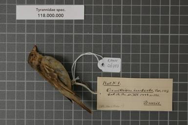 | Keywords: Naturalis Biodiversity Center - RMNH.AVES.126753 1 - Tyrannidae spec. - Tyrannidae - bird skin specimen.jpeg artwork Dimensions artwork Document type Tyrannidae Tyrannidae Individual count 1 Infraspecific epithet Infraspecific rank Institution Naturalis Kind of unit artwork Kind of unit specimen skin Life stage Brazil Medium artwork Nomenclatural code Additional label info Tyrannulus elatus Lath Sylvia Pl ent 708 2 Brésil old label by Temm Occurrence ID page Other fields Other versions artwork Permission license Naturalis donation CC-0 Publication location Scientific name Tyrannidae spec Scientific name authorship Source url http //bioportal naturalis nl Specific epithet spec State or province Subject keywords artwork Subject keywords publication Title artwork Title publication Type status Uploaded with GWToolset Naturalis_Biodiversity_Center_-_RMNH AVES 126753_1_-_Tyrannidae_spec _-_Tyrannidae_-_bird_skin_specimen http //medialib naturalis nl/file/id/RMNH AVES 126753_1/format/large Media donated by Naturalis Biodiversity Center Songbird specimens at Naturalis Biodiversity Center Tyrannidae spec Tyrannidae |