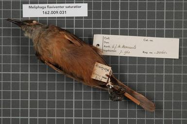 | Keywords: Naturalis Biodiversity Center - RMNH.AVES.30161 2 - Meliphaga flaviventer saturatior (Rothschild and Hartert, 1903) - Meliphagidae - bird skin specimen.jpeg artwork Dimensions artwork Document type Meliphagidae Meliphaga Individual count 1 Infraspecific epithet saturatior Infraspecific rank Institution Naturalis Kind of unit artwork Kind of unit specimen skin Life stage Nw-Guinea Eramboe Kali Wanggo Medium artwork Nomenclatural code ADDITIONAL info remark Honey eater eater crossed out Bird Occurrence ID page Other fields Other versions artwork Permission license Naturalis donation CC-0 Publication location Scientific name Meliphaga flaviventer saturatior Rothschild and Hartert 1903 Scientific name authorship Rothschild and Hartert 1903 male Source url http //bioportal naturalis nl Specific epithet flaviventer State or province Nw-Guinea Subject keywords artwork Subject keywords publication Title artwork Title publication Type status Uploaded with GWToolset Naturalis_Biodiversity_Center_-_RMNH AVES 30161_2_-_Meliphaga_flaviventer_saturatior_ Rothschild_and_Hartert _1903 _-_Meliphagidae_-_bird_skin_specimen http //medialib naturalis nl/file/id/RMNH AVES 30161_2/format/large Media donated by Naturalis Biodiversity Center Songbird specimens at Naturalis Biodiversity Center Meliphaga flaviventer Meliphaga |