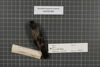 | Keywords: Naturalis Biodiversity Center - RMNH.AVES.35077 1 - Sporophila torqueola torqueola (Bonaparte, 1851) - Emberizidae - bird skin specimen.jpeg artwork Dimensions artwork Document type Emberizidae Sporophila Individual count 1 Infraspecific epithet torqueola Infraspecific rank Institution Naturalis Kind of unit artwork Kind of unit specimen skin Life stage Oaxaca Loma Bonita Rancho Las Vegas Medium artwork Nomenclatural code Bodily condition Fett II Occurrence ID page Other fields Other versions artwork Permission license Naturalis donation CC-0 Publication location Scientific name Sporophila torqueola torqueola Bonaparte 1851 Scientific name authorship Bonaparte 1851 male Source url http //bioportal naturalis nl Specific epithet torqueola State or province Oaxaca Subject keywords artwork Subject keywords publication Title artwork Title publication Type status Uploaded with GWToolset Naturalis_Biodiversity_Center_-_RMNH AVES 35077_1_-_Sporophila_torqueola_torqueola_ Bonaparte _1851 _-_Emberizidae_-_bird_skin_specimen http //medialib naturalis nl/file/id/RMNH AVES 35077_1/format/large Media donated by Naturalis Biodiversity Center Songbird specimens at Naturalis Biodiversity Center Sporophila torqueola Sporophila |