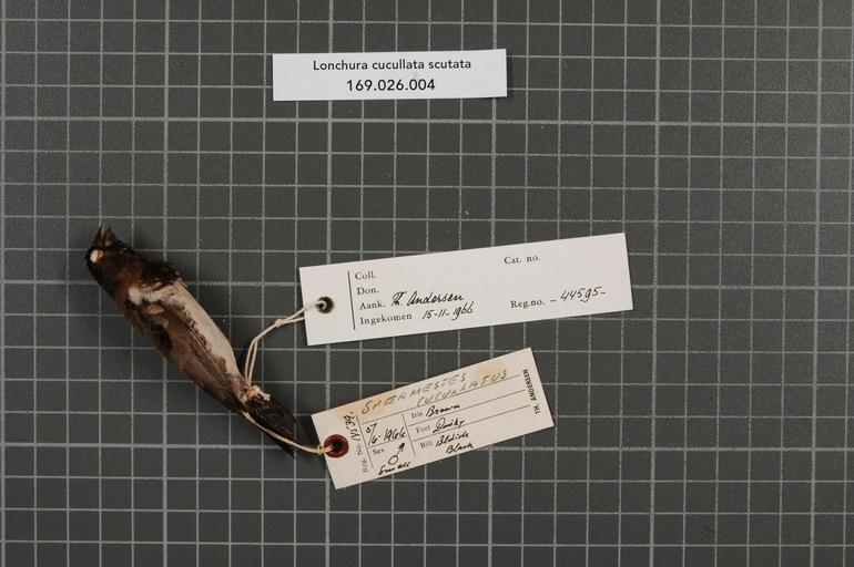 | Keywords: Naturalis Biodiversity Center - RMNH.AVES.44595 1 - Lonchura cucullata scutata (Heuglin, 1863) - Estrildidae - bird skin specimen.jpeg artwork Dimensions artwork Document type Estrildidae Lonchura Individual count 1 Infraspecific epithet scutata Infraspecific rank Institution Naturalis Kind of unit artwork Kind of unit specimen skin Life stage Tanzania Mtwara Distr Mikindani Medium artwork Nomenclatural code Occurrence ID page Other fields Other versions artwork Permission license Naturalis donation CC-0 Publication location Scientific name Lonchura cucullata scutata Heuglin 1863 Scientific name authorship Heuglin 1863 male Source url http //bioportal naturalis nl Specific epithet cucullata State or province Mtwara Distr Subject keywords artwork Subject keywords publication Title artwork Title publication Type status Uploaded with GWToolset Naturalis_Biodiversity_Center_-_RMNH AVES 44595_1_-_Lonchura_cucullata_scutata_ Heuglin _1863 _-_Estrildidae_-_bird_skin_specimen http //medialib naturalis nl/file/id/RMNH AVES 44595_1/format/large Media donated by Naturalis Biodiversity Center Songbird specimens at Naturalis Biodiversity Center Lonchura cucullata Lonchura |