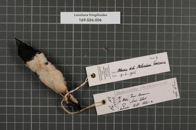 | Keywords: Naturalis Biodiversity Center - RMNH.AVES.44602 2 - Lonchura fringilloides Lafresnaye, 1835 - Estrildidae - bird skin specimen.jpeg artwork Dimensions artwork Document type Estrildidae Lonchura Individual count 1 Infraspecific epithet Infraspecific rank Institution Naturalis Kind of unit artwork Kind of unit specimen skin Life stage Tanzania Mtwara Distr Mikindani Medium artwork Nomenclatural code Occurrence ID page Other fields Other versions artwork Permission license Naturalis donation CC-0 Publication location Scientific name Lonchura fringilloides Lafresnaye 1835 Scientific name authorship Lafresnaye 1835 female Source url http //bioportal naturalis nl Specific epithet fringilloides State or province Mtwara Distr Subject keywords artwork Subject keywords publication Title artwork Title publication Type status Uploaded with GWToolset Naturalis_Biodiversity_Center_-_RMNH AVES 44602_2_-_Lonchura_fringilloides_Lafresnaye _1835_-_Estrildidae_-_bird_skin_specimen http //medialib naturalis nl/file/id/RMNH AVES 44602_2/format/large Media donated by Naturalis Biodiversity Center Songbird specimens at Naturalis Biodiversity Center Lonchura fringilloides Lonchura |
