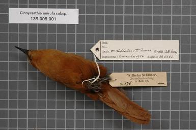 | Keywords: Naturalis Biodiversity Center - RMNH.AVES.128604 2 - Cinnycerthia unirufa subsp. - Troglodytidae - bird skin specimen.jpeg artwork Dimensions artwork Document type Troglodytidae Cinnycerthia Individual count 1 Infraspecific epithet subsp Infraspecific rank Institution Naturalis Kind of unit artwork Kind of unit specimen skin Life stage Medium artwork Nomenclatural code Occurrence ID page Other fields Other versions artwork Permission license Naturalis donation CC-0 Publication location Scientific name Cinnycerthia unirufa subsp Scientific name authorship Source url http //bioportal naturalis nl Specific epithet unirufa State or province Subject keywords artwork Subject keywords publication Title artwork Title publication Type status Uploaded with GWToolset Naturalis_Biodiversity_Center_-_RMNH AVES 128604_2_-_Cinnycerthia_unirufa_subsp _-_Troglodytidae_-_bird_skin_specimen http //medialib naturalis nl/file/id/RMNH AVES 128604_2/format/large Media donated by Naturalis Biodiversity Center Songbird specimens at Naturalis Biodiversity Center Cinnycerthia unirufa Cinnycerthia |