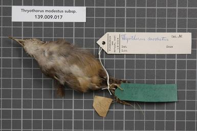| Keywords: Naturalis Biodiversity Center - RMNH.AVES.128629 1 - Thryothorus modestus subsp. - Troglodytidae - bird skin specimen.jpeg artwork Dimensions artwork Document type Troglodytidae Thryothorus Individual count 1 Infraspecific epithet subsp Infraspecific rank Institution Naturalis Kind of unit artwork Kind of unit specimen skin Life stage Medium artwork Nomenclatural code Additional info H Country remark On Schlüter label Amerika Sex remark On Schlüter label female Occurrence ID page Other fields Other versions artwork Permission license Naturalis donation CC-0 Publication location Scientific name Thryothorus modestus subsp Scientific name authorship female Source url http //bioportal naturalis nl Specific epithet modestus State or province Subject keywords artwork Subject keywords publication Title artwork Title publication Type status Uploaded with GWToolset Naturalis_Biodiversity_Center_-_RMNH AVES 128629_1_-_Thryothorus_modestus_subsp _-_Troglodytidae_-_bird_skin_specimen http //medialib naturalis nl/file/id/RMNH AVES 128629_1/format/large Media donated by Naturalis Biodiversity Center Songbird specimens at Naturalis Biodiversity Center Thryothorus modestus Thryothorus |