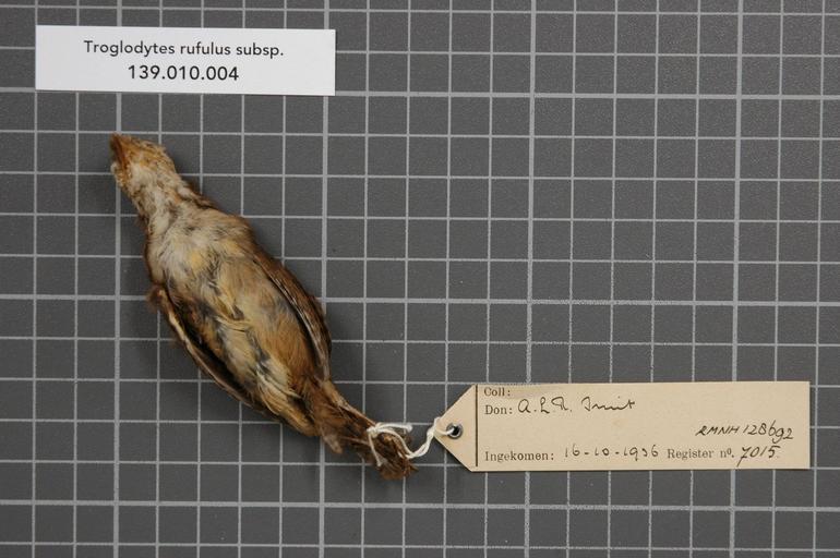 | Keywords: Naturalis Biodiversity Center - RMNH.AVES.128692 2 - Troglodytes rufulus subsp. - Troglodytidae - bird skin specimen.jpeg artwork Dimensions artwork Document type Troglodytidae Troglodytes Individual count 1 Infraspecific epithet subsp Infraspecific rank Institution Naturalis Kind of unit artwork Kind of unit specimen skin Life stage juvenile Medium artwork Nomenclatural code Occurrence ID page Other fields Other versions artwork Permission license Naturalis donation CC-0 Publication location Scientific name Troglodytes rufulus subsp Scientific name authorship male Source url http //bioportal naturalis nl Specific epithet rufulus State or province Subject keywords artwork Subject keywords publication Title artwork Title publication Type status Uploaded with GWToolset Naturalis_Biodiversity_Center_-_RMNH AVES 128692_2_-_Troglodytes_rufulus_subsp _-_Troglodytidae_-_bird_skin_specimen http //medialib naturalis nl/file/id/RMNH AVES 128692_2/format/large Media donated by Naturalis Biodiversity Center Songbird specimens at Naturalis Biodiversity Center Troglodytes rufulus |
