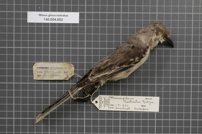 | Keywords: Naturalis Biodiversity Center - RMNH.AVES.128737 1 - Mimus gilvus rostratus Ridgway, 1884 - Mimidae - bird skin specimen.jpeg artwork Dimensions artwork Document type Mimidae Mimus Individual count 1 Infraspecific epithet rostratus Infraspecific rank Institution Naturalis Kind of unit artwork Kind of unit specimen skin Life stage Medium artwork Nomenclatural code Region remark on small label Benedenwindsche-Eil Occurrence ID page Other fields Other versions artwork Permission license Naturalis donation CC-0 Publication location Scientific name Mimus gilvus rostratus Ridgway 1884 Scientific name authorship Ridgway 1884 Source url http //bioportal naturalis nl Specific epithet gilvus State or province Curaτao Subject keywords artwork Subject keywords publication Title artwork Title publication Type status Uploaded with GWToolset Naturalis_Biodiversity_Center_-_RMNH AVES 128737_1_-_Mimus_gilvus_rostratus_Ridgway _1884_-_Mimidae_-_bird_skin_specimen http //medialib naturalis nl/file/id/RMNH AVES 128737_1/format/large Media donated by Naturalis Biodiversity Center Songbird specimens at Naturalis Biodiversity Center Mimus gilvus museum specimens |