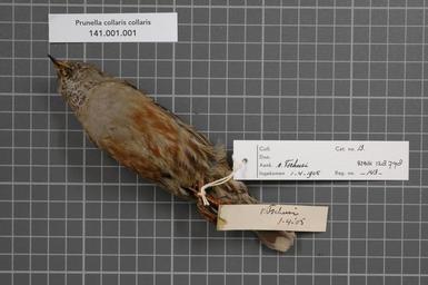 | Keywords: Naturalis Biodiversity Center - RMNH.AVES.128798 2 - Prunella collaris collaris (Scopoli, 1769) - Prunellidae - bird skin specimen.jpeg artwork Dimensions artwork Document type Prunellidae Prunella Individual count 1 Infraspecific epithet collaris Infraspecific rank Institution Naturalis Kind of unit artwork Kind of unit specimen skin Life stage Medium artwork Nomenclatural code Occurrence ID page Other fields Other versions artwork Permission license Naturalis donation CC-0 Publication location Scientific name Prunella collaris collaris Scopoli 1769 Scientific name authorship Scopoli 1769 female Source url http //bioportal naturalis nl Specific epithet collaris State or province Subject keywords artwork Subject keywords publication Title artwork Title publication Type status Uploaded with GWToolset Naturalis_Biodiversity_Center_-_RMNH AVES 128798_2_-_Prunella_collaris_collaris_ Scopoli _1769 _-_Prunellidae_-_bird_skin_specimen http //medialib naturalis nl/file/id/RMNH AVES 128798_2/format/large Media donated by Naturalis Biodiversity Center Songbird specimens at Naturalis Biodiversity Center Prunella collaris Prunella bird |