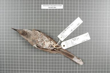 View Original:Naturalis Biodiversity Center - RMNH.AVES.54927 2 - Anthochaera chrysoptera lunulata (Gould, 1838) - Meliphagidae - bird skin specimen.jpeg (1920x1277)