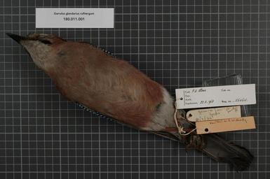 | Keywords: Naturalis Biodiversity Center - RMNH.AVES.56464 2 - Garrulus glandarius rufitergum Hartert, 1903 - Corvidae - bird skin specimen.jpeg artwork Dimensions artwork Document type Corvidae Garrulus Individual count 1 Infraspecific epithet rufitergum Infraspecific rank Institution Naturalis Kind of unit artwork Kind of unit specimen skin Life stage Engeland Yorks Yarm on Tees Medium artwork Nomenclatural code ADDITIONAL info remark preceded by unreadable word Occurrence ID page Other fields Other versions artwork Permission license Naturalis donation CC-0 Publication location Scientific name Garrulus glandarius rufitergum Hartert 1903 Scientific name authorship Hartert 1903 female Source url http //bioportal naturalis nl Specific epithet glandarius State or province Engeland Yorks Subject keywords artwork Subject keywords publication Title artwork Title publication Type status Uploaded with GWToolset Naturalis_Biodiversity_Center_-_RMNH AVES 56464_2_-_Garrulus_glandarius_rufitergum_Hartert _1903_-_Corvidae_-_bird_skin_specimen http //medialib naturalis nl/file/id/RMNH AVES 56464_2/format/large Media donated by Naturalis Biodiversity Center Songbird specimens at Naturalis Biodiversity Center Garrulus glandarius Garrulus |