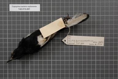 | Keywords: Naturalis Biodiversity Center - RMNH.AVES.129267 2 - Copsychus saularis ceylonensis Sclater, 1861 - Turdidae - bird skin specimen.jpeg artwork Dimensions artwork Document type Turdidae Copsychus Individual count 1 Infraspecific epithet ceylonensis Infraspecific rank Institution Naturalis Kind of unit artwork Kind of unit specimen skin Life stage Medium artwork Nomenclatural code Occurrence ID page Other fields Other versions artwork Permission license Naturalis donation CC-0 Publication location Scientific name Copsychus saularis ceylonensis Sclater 1861 Scientific name authorship Sclater 1861 male Source url http //bioportal naturalis nl Specific epithet saularis State or province Subject keywords artwork Subject keywords publication Title artwork Title publication Type status Uploaded with GWToolset Naturalis_Biodiversity_Center_-_RMNH AVES 129267_2_-_Copsychus_saularis_ceylonensis_Sclater _1861_-_Turdidae_-_bird_skin_specimen http //medialib naturalis nl/file/id/RMNH AVES 129267_2/format/large Media donated by Naturalis Biodiversity Center Songbird specimens at Naturalis Biodiversity Center Copsychus saularis museum specimens |