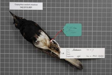 | Keywords: Naturalis Biodiversity Center - RMNH.AVES.129299 2 - Copsychus saularis musicus (Raffles, 1822) - Turdidae - bird skin specimen.jpeg artwork Dimensions artwork Document type Turdidae Copsychus Individual count 1 Infraspecific epithet musicus Infraspecific rank Institution Naturalis Kind of unit artwork Kind of unit specimen skin Life stage Medium artwork Nomenclatural code Sex remark On RMNH label male Occurrence ID page Other fields Other versions artwork Permission license Naturalis donation CC-0 Publication location Scientific name Copsychus saularis musicus Raffles 1822 Scientific name authorship Raffles 1822 male Source url http //bioportal naturalis nl Specific epithet saularis State or province Billiton Subject keywords artwork Subject keywords publication Title artwork Title publication Type status Uploaded with GWToolset Naturalis_Biodiversity_Center_-_RMNH AVES 129299_2_-_Copsychus_saularis_musicus_ Raffles _1822 _-_Turdidae_-_bird_skin_specimen http //medialib naturalis nl/file/id/RMNH AVES 129299_2/format/large Media donated by Naturalis Biodiversity Center Songbird specimens at Naturalis Biodiversity Center Copsychus saularis museum specimens |