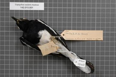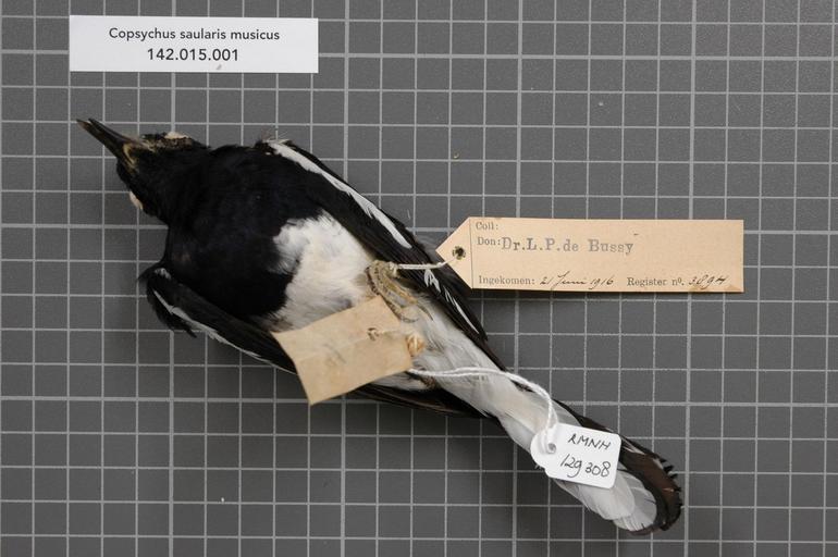 | Keywords: Naturalis Biodiversity Center - RMNH.AVES.129308 2 - Copsychus saularis musicus (Raffles, 1822) - Turdidae - bird skin specimen.jpeg artwork Dimensions artwork Document type Turdidae Copsychus Individual count 1 Infraspecific epithet musicus Infraspecific rank Institution Naturalis Kind of unit artwork Kind of unit specimen skin Life stage Medium artwork Nomenclatural code Occurrence ID page Other fields Other versions artwork Permission license Naturalis donation CC-0 Publication location Scientific name Copsychus saularis musicus Raffles 1822 Scientific name authorship Raffles 1822 male Source url http //bioportal naturalis nl Specific epithet saularis State or province Sumatra Deli Subject keywords artwork Subject keywords publication Title artwork Title publication Type status Uploaded with GWToolset Naturalis_Biodiversity_Center_-_RMNH AVES 129308_2_-_Copsychus_saularis_musicus_ Raffles _1822 _-_Turdidae_-_bird_skin_specimen http //medialib naturalis nl/file/id/RMNH AVES 129308_2/format/large Media donated by Naturalis Biodiversity Center Songbird specimens at Naturalis Biodiversity Center Copsychus saularis museum specimens |