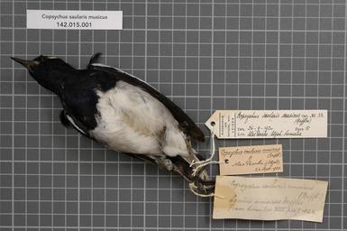 | Keywords: Naturalis Biodiversity Center - RMNH.AVES.129322 1 - Copsychus saularis musicus (Raffles, 1822) - Turdidae - bird skin specimen.jpeg artwork Dimensions artwork Document type Turdidae Copsychus Individual count 1 Infraspecific epithet musicus Infraspecific rank Institution Naturalis Kind of unit artwork Kind of unit specimen skin Life stage Medium artwork Nomenclatural code Occurrence ID page Other fields Other versions artwork Permission license Naturalis donation CC-0 Publication location Scientific name Copsychus saularis musicus Raffles 1822 Scientific name authorship Raffles 1822 male Source url http //bioportal naturalis nl Specific epithet saularis State or province Sumatra Atjeh Subject keywords artwork Subject keywords publication Title artwork Title publication Type status Uploaded with GWToolset Naturalis_Biodiversity_Center_-_RMNH AVES 129322_1_-_Copsychus_saularis_musicus_ Raffles _1822 _-_Turdidae_-_bird_skin_specimen http //medialib naturalis nl/file/id/RMNH AVES 129322_1/format/large Media donated by Naturalis Biodiversity Center Songbird specimens at Naturalis Biodiversity Center Copsychus saularis museum specimens |