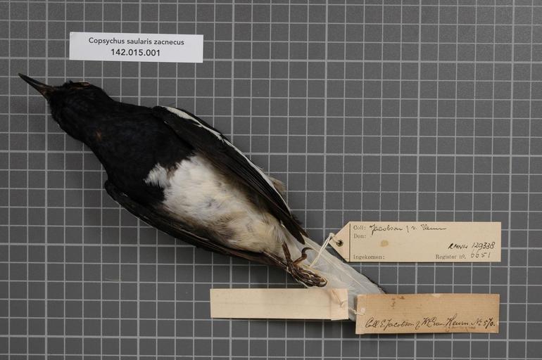 | Keywords: Naturalis Biodiversity Center - RMNH.AVES.129338 2 - Copsychus saularis zacnecus Oberholser, 1912 - Turdidae - bird skin specimen.jpeg artwork Dimensions artwork Document type Turdidae Copsychus Individual count 1 Infraspecific epithet zacnecus Infraspecific rank Institution Naturalis Kind of unit artwork Kind of unit specimen skin Life stage Medium artwork Nomenclatural code Occurrence ID page Other fields Other versions artwork Permission license Naturalis donation CC-0 Publication location Scientific name Copsychus saularis zacnecus Oberholser 1912 Scientific name authorship Oberholser 1912 male Source url http //bioportal naturalis nl Specific epithet saularis State or province Simalur Subject keywords artwork Subject keywords publication Title artwork Title publication Type status Uploaded with GWToolset Naturalis_Biodiversity_Center_-_RMNH AVES 129338_2_-_Copsychus_saularis_zacnecus_Oberholser _1912_-_Turdidae_-_bird_skin_specimen http //medialib naturalis nl/file/id/RMNH AVES 129338_2/format/large Media donated by Naturalis Biodiversity Center Songbird specimens at Naturalis Biodiversity Center Copsychus saularis museum specimens |