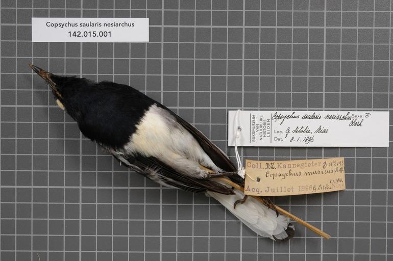 | Keywords: Naturalis Biodiversity Center - RMNH.AVES.129345 1 - Copsychus saularis nesiarchus Oberholser, 1923 - Turdidae - bird skin specimen.jpeg artwork Dimensions artwork Document type Turdidae Copsychus Individual count 1 Infraspecific epithet nesiarchus Infraspecific rank Institution Naturalis Kind of unit artwork Kind of unit specimen skin Life stage Medium artwork Nomenclatural code Occurrence ID page Other fields Other versions artwork Permission license Naturalis donation CC-0 Publication location Scientific name Copsychus saularis nesiarchus Oberholser 1923 Scientific name authorship Oberholser 1923 male Source url http //bioportal naturalis nl Specific epithet saularis State or province Nias Subject keywords artwork Subject keywords publication Title artwork Title publication Type status Uploaded with GWToolset Naturalis_Biodiversity_Center_-_RMNH AVES 129345_1_-_Copsychus_saularis_nesiarchus_Oberholser _1923_-_Turdidae_-_bird_skin_specimen http //medialib naturalis nl/file/id/RMNH AVES 129345_1/format/large Media donated by Naturalis Biodiversity Center Songbird specimens at Naturalis Biodiversity Center Copsychus saularis museum specimens |
