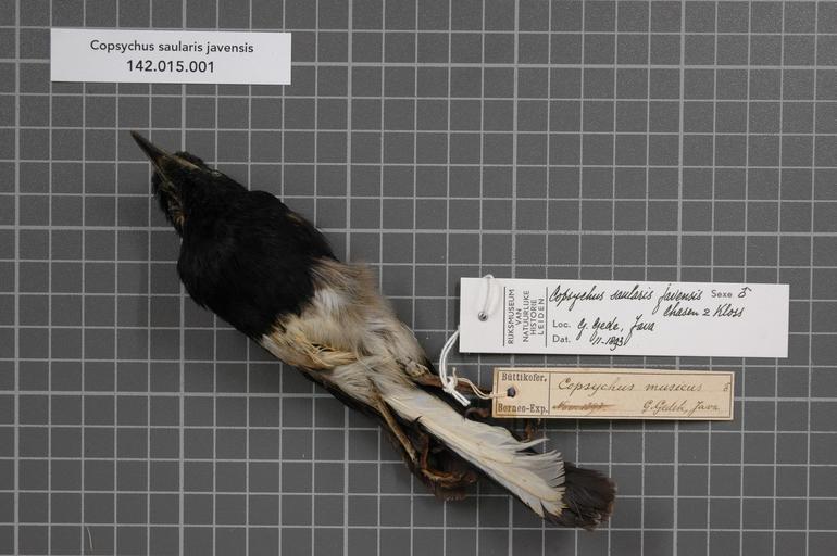 | Keywords: Naturalis Biodiversity Center - RMNH.AVES.129348 1 - Copsychus saularis javensis Chasen & Kloss, 1930 - Turdidae - bird skin specimen.jpeg artwork Dimensions artwork Document type Turdidae Copsychus Individual count 1 Infraspecific epithet javensis Infraspecific rank Institution Naturalis Kind of unit artwork Kind of unit specimen skin Life stage Medium artwork Nomenclatural code Occurrence ID page Other fields Other versions artwork Permission license Naturalis donation CC-0 Publication location Scientific name Copsychus saularis javensis Chasen Kloss 1930 Scientific name authorship Chasen Kloss 1930 male Source url http //bioportal naturalis nl Specific epithet saularis State or province Subject keywords artwork Subject keywords publication Title artwork Title publication Type status Uploaded with GWToolset Naturalis_Biodiversity_Center_-_RMNH AVES 129348_1_-_Copsychus_saularis_javensis_Chasen_ _Kloss _1930_-_Turdidae_-_bird_skin_specimen http //medialib naturalis nl/file/id/RMNH AVES 129348_1/format/large Media donated by Naturalis Biodiversity Center Songbird specimens at Naturalis Biodiversity Center Copsychus saularis museum specimens |