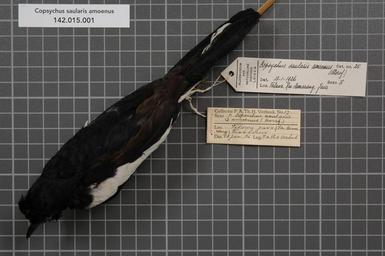 | Keywords: Naturalis Biodiversity Center - RMNH.AVES.129424 1 - Copsychus saularis amoenus (Horsfield, 1821) - Turdidae - bird skin specimen.jpeg artwork Dimensions artwork Document type Turdidae Copsychus Individual count 1 Infraspecific epithet amoenus Infraspecific rank Institution Naturalis Kind of unit artwork Kind of unit specimen skin Life stage Medium artwork Nomenclatural code Occurrence ID page Other fields Other versions artwork Permission license Naturalis donation CC-0 Publication location Scientific name Copsychus saularis amoenus Horsfield 1821 Scientific name authorship Horsfield 1821 male Source url http //bioportal naturalis nl Specific epithet saularis State or province Java Res Semarang Subject keywords artwork Subject keywords publication Title artwork Title publication Type status Uploaded with GWToolset Naturalis_Biodiversity_Center_-_RMNH AVES 129424_1_-_Copsychus_saularis_amoenus_ Horsfield _1821 _-_Turdidae_-_bird_skin_specimen http //medialib naturalis nl/file/id/RMNH AVES 129424_1/format/large Media donated by Naturalis Biodiversity Center Songbird specimens at Naturalis Biodiversity Center Copsychus saularis museum specimens |
