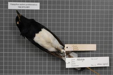 | Keywords: Naturalis Biodiversity Center - RMNH.AVES.129436 2 - Copsychus saularis problematicus Sharpe, 1876 - Turdidae - bird skin specimen.jpeg artwork Dimensions artwork Document type Turdidae Copsychus Individual count 1 Infraspecific epithet problematicus Infraspecific rank Institution Naturalis Kind of unit artwork Kind of unit specimen skin Life stage Medium artwork Nomenclatural code Occurrence ID page Other fields Other versions artwork Permission license Naturalis donation CC-0 Publication location Scientific name Copsychus saularis problematicus Sharpe 1876 Scientific name authorship Sharpe 1876 male Source url http //bioportal naturalis nl Specific epithet saularis State or province Borneo Kapuas Subject keywords artwork Subject keywords publication Title artwork Title publication Type status Uploaded with GWToolset Naturalis_Biodiversity_Center_-_RMNH AVES 129436_2_-_Copsychus_saularis_problematicus_Sharpe _1876_-_Turdidae_-_bird_skin_specimen http //medialib naturalis nl/file/id/RMNH AVES 129436_2/format/large Media donated by Naturalis Biodiversity Center Songbird specimens at Naturalis Biodiversity Center Copsychus saularis museum specimens |