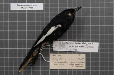 | Keywords: Naturalis Biodiversity Center - RMNH.AVES.129458 1 - Copsychus saularis pluto Bonaparte, 1851 - Turdidae - bird skin specimen.jpeg artwork Dimensions artwork Document type Turdidae Copsychus Individual count 1 Infraspecific epithet pluto Infraspecific rank Institution Naturalis Kind of unit artwork Kind of unit specimen skin Life stage Medium artwork Nomenclatural code Occurrence ID page Other fields Other versions artwork Permission license Naturalis donation CC-0 Publication location Scientific name Copsychus saularis pluto Bonaparte 1851 Scientific name authorship Bonaparte 1851 male Source url http //bioportal naturalis nl Specific epithet saularis State or province C Borneo upper Mahakam Subject keywords artwork Subject keywords publication Title artwork Title publication Type status Uploaded with GWToolset Naturalis_Biodiversity_Center_-_RMNH AVES 129458_1_-_Copsychus_saularis_pluto_Bonaparte _1851_-_Turdidae_-_bird_skin_specimen http //medialib naturalis nl/file/id/RMNH AVES 129458_1/format/large Media donated by Naturalis Biodiversity Center Songbird specimens at Naturalis Biodiversity Center Copsychus saularis museum specimens |