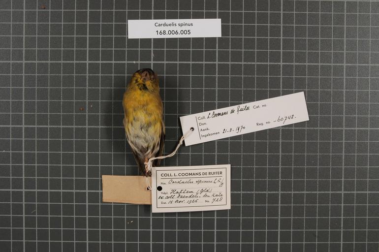 | Keywords: Naturalis Biodiversity Center - RMNH.AVES.60742 1 - Carduelis spinus (Linnaeus, 1758) - Fringillidae - bird skin specimen.jpeg artwork Dimensions artwork Document type Fringillidae Carduelis Individual count 1 Infraspecific epithet Infraspecific rank Institution Naturalis Kind of unit artwork Kind of unit specimen skin Life stage Gld Hattem Medium artwork Nomenclatural code ADDITIONAL preparation info W Engels Zwolle Occurrence ID page Other fields Other versions artwork Permission license Naturalis donation CC-0 Publication location Scientific name Carduelis spinus Linnaeus 1758 Scientific name authorship Linnaeus 1758 male Source url http //bioportal naturalis nl Specific epithet spinus State or province Gld Subject keywords artwork Subject keywords publication Title artwork Title publication Type status Uploaded with GWToolset Naturalis_Biodiversity_Center_-_RMNH AVES 60742_1_-_Carduelis_spinus_ Linnaeus _1758 _-_Fringillidae_-_bird_skin_specimen http //medialib naturalis nl/file/id/RMNH AVES 60742_1/format/large Media donated by Naturalis Biodiversity Center Songbird specimens at Naturalis Biodiversity Center Spinus spinus Carduelis |