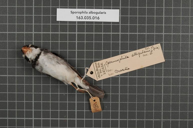 | Keywords: Naturalis Biodiversity Center - RMNH.AVES.6484 2 - Sporophila albogularis (Spix, 1825) - Emberizidae - bird skin specimen.jpeg artwork Dimensions artwork Document type Emberizidae Sporophila Individual count 1 Infraspecific epithet Infraspecific rank Institution Naturalis Kind of unit artwork Kind of unit specimen skin Life stage Brazilie Medium artwork Nomenclatural code Occurrence ID page Other fields Other versions artwork Permission license Naturalis donation CC-0 Publication location Scientific name Sporophila albogularis Spix 1825 Scientific name authorship Spix 1825 male Source url http //bioportal naturalis nl Specific epithet albogularis State or province Subject keywords artwork Subject keywords publication Title artwork Title publication Type status Uploaded with GWToolset Naturalis_Biodiversity_Center_-_RMNH AVES 6484_2_-_Sporophila_albogularis_ Spix _1825 _-_Emberizidae_-_bird_skin_specimen http //medialib naturalis nl/file/id/RMNH AVES 6484_2/format/large Media donated by Naturalis Biodiversity Center Songbird specimens at Naturalis Biodiversity Center Sporophila albogularis Sporophila |