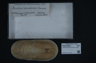 | Keywords: Naturalis Biodiversity Center - RMNH.MOL.133707 - Scutus anatinus (Donovan, 1820) - Fissurellidae - Mollusc shell.jpeg artwork Dimensions artwork Document type Fissurellidae subfamily Emarginulinae Scutus Individual count Infraspecific epithet Infraspecific rank Institution Naturalis Kind of unit artwork Kind of unit specimen shell Life stage Medium artwork Nomenclatural code Source institute Leiden Scale the width of the text on the species/QR-code label is 38 mm Occurrence ID page Other fields Other versions artwork Permission license Naturalis donation CC-0 Mollusca Publication location Scientific name Scutus anatinus Donovan 1820 Scientific name authorship Donovan 1820 Source url http //bioportal naturalis nl Specific epithet anatinus State or province Subject keywords artwork Subject keywords publication Title artwork Title publication Type status Uploaded with GWToolset Naturalis_Biodiversity_Center_-_RMNH MOL 133707_-_Scutus_anatinus_ Donovan _1820 _-_Fissurellidae_-_Mollusc_shell http //medialib naturalis nl/file/id/RMNH MOL 133707/format/large Molluscs at Naturalis from the Rijksmuseum van Natuurlijke Historie Media donated by Naturalis Biodiversity Center Scutus Scutus anatinus |