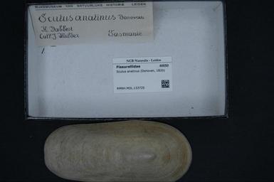 | Keywords: Naturalis Biodiversity Center - RMNH.MOL.133725 - Scutus anatinus (Donovan, 1820) - Fissurellidae - Mollusc shell.jpeg artwork Dimensions artwork Document type Fissurellidae subfamily Emarginulinae Scutus Individual count Infraspecific epithet Infraspecific rank Institution Naturalis Kind of unit artwork Kind of unit specimen shell Life stage Medium artwork Nomenclatural code Source institute Leiden Scale the width of the text on the species/QR-code label is 38 mm Occurrence ID page Other fields Other versions artwork Permission license Naturalis donation CC-0 Mollusca Publication location Scientific name Scutus anatinus Donovan 1820 Scientific name authorship Donovan 1820 Source url http //bioportal naturalis nl Specific epithet anatinus State or province Subject keywords artwork Subject keywords publication Title artwork Title publication Type status Uploaded with GWToolset Naturalis_Biodiversity_Center_-_RMNH MOL 133725_-_Scutus_anatinus_ Donovan _1820 _-_Fissurellidae_-_Mollusc_shell http //medialib naturalis nl/file/id/RMNH MOL 133725/format/large Molluscs at Naturalis from the Rijksmuseum van Natuurlijke Historie Media donated by Naturalis Biodiversity Center Scutus Scutus anatinus |