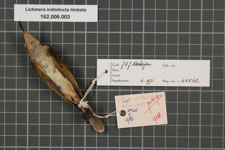 | Keywords: Naturalis Biodiversity Center - RMNH.AVES.65562 2 - Lichmera indistincta limbata (S. Muller, 1843) - Meliphagidae - bird skin specimen.jpeg artwork Dimensions artwork Document type Meliphagidae Lichmera Individual count 1 Infraspecific epithet limbata Infraspecific rank Institution Naturalis Kind of unit artwork Kind of unit specimen skin Life stage Roti Pulau Dao Medium artwork Nomenclatural code Occurrence ID page Other fields Other versions artwork Permission license Naturalis donation CC-0 Publication location Scientific name Lichmera indistincta limbata S Muller 1843 Scientific name authorship S Müller 1843 female Source url http //bioportal naturalis nl Specific epithet indistincta State or province Roti Subject keywords artwork Subject keywords publication Title artwork Title publication Type status Uploaded with GWToolset Naturalis_Biodiversity_Center_-_RMNH AVES 65562_2_-_Lichmera_indistincta_limbata_ S _Muller _1843 _-_Meliphagidae_-_bird_skin_specimen http //medialib naturalis nl/file/id/RMNH AVES 65562_2/format/large Media donated by Naturalis Biodiversity Center Songbird specimens at Naturalis Biodiversity Center Lichmera indistincta Lichmera |