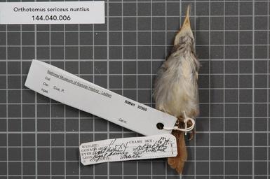 | Keywords: Naturalis Biodiversity Center - RMNH.AVES.92900 2 - Orthotomus sericeus nuntius Bangs, 1922 - Sylviidae - bird skin specimen.jpeg artwork Dimensions artwork Document type Sylviidae Orthotomus Individual count 1 Infraspecific epithet nuntius Infraspecific rank Institution Naturalis Kind of unit artwork Kind of unit specimen skin Life stage Philippines Palawan Quezon Medium artwork Nomenclatural code Occurrence ID page Other fields Other versions artwork Permission license Naturalis donation CC-0 Publication location Scientific name Orthotomus sericeus nuntius Bangs 1922 Scientific name authorship Bangs 1922 male Source url http //bioportal naturalis nl Specific epithet sericeus State or province Palawan Subject keywords artwork Subject keywords publication Title artwork Title publication Type status Uploaded with GWToolset Naturalis_Biodiversity_Center_-_RMNH AVES 92900_2_-_Orthotomus_sericeus_nuntius_Bangs _1922_-_Sylviidae_-_bird_skin_specimen http //medialib naturalis nl/file/id/RMNH AVES 92900_2/format/large Media donated by Naturalis Biodiversity Center Songbird specimens at Naturalis Biodiversity Center Orthotomus sericeus |