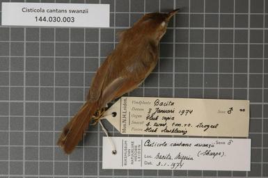 | Keywords: Naturalis Biodiversity Center - RMNH.AVES.76677 1 - Cisticola cantans swanzii (Sharpe, 1870) - Sylviidae - bird skin specimen.jpeg artwork Dimensions artwork Document type Sylviidae Cisticola Individual count 1 Infraspecific epithet swanzii Infraspecific rank Institution Naturalis Kind of unit artwork Kind of unit specimen skin Life stage Nigeria Bacita Medium artwork Nomenclatural code Occurrence ID page Other fields Other versions artwork Permission license Naturalis donation CC-0 Publication location Scientific name Cisticola cantans swanzii Sharpe 1870 Scientific name authorship Sharpe 1870 male Source url http //bioportal naturalis nl Specific epithet cantans State or province Subject keywords artwork Subject keywords publication Title artwork Title publication Type status Uploaded with GWToolset Naturalis_Biodiversity_Center_-_RMNH AVES 76677_1_-_Cisticola_cantans_swanzii_ Sharpe _1870 _-_Sylviidae_-_bird_skin_specimen http //medialib naturalis nl/file/id/RMNH AVES 76677_1/format/large Media donated by Naturalis Biodiversity Center Songbird specimens at Naturalis Biodiversity Center Cisticola cantans museum specimens |