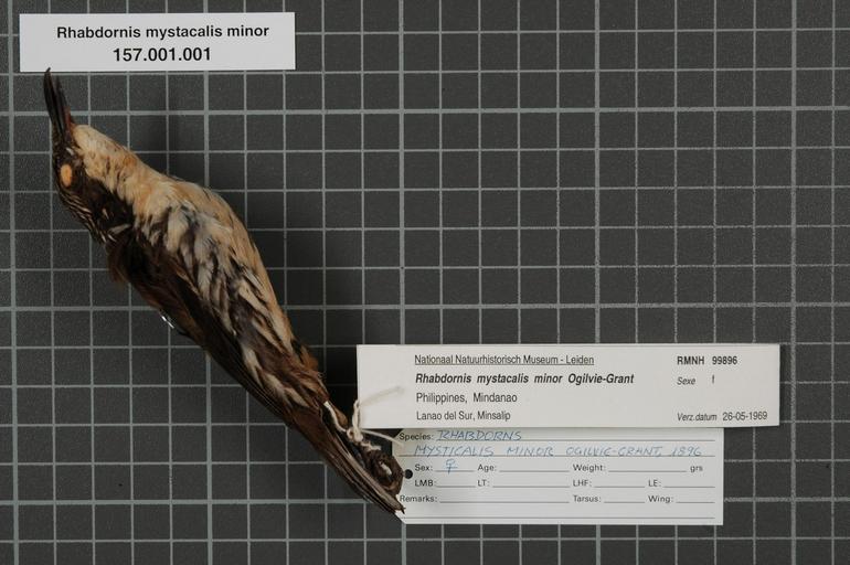 | Keywords: Naturalis Biodiversity Center - RMNH.AVES.99896 1 - Rhabdornis mystacalis minor Ogilvie-Grant, 1896 - Rhabdornithidae - bird skin specimen.jpeg artwork Dimensions artwork Document type Rhabdornithidae Rhabdornis Individual count 1 Infraspecific epithet minor Infraspecific rank Institution Naturalis Kind of unit artwork Kind of unit specimen skin Life stage Philippines Mindanao Isl Lanao del Sur Minsalip Diak Tandassa Hill Mt Sugar Loaf Medium artwork Nomenclatural code Occurrence ID page Other fields Other versions artwork Permission license Naturalis donation CC-0 Publication location Scientific name Rhabdornis mystacalis minor Ogilvie-Grant 1896 Scientific name authorship Ogilvie-Grant 1896 female Source url http //bioportal naturalis nl Specific epithet mystacalis State or province Subject keywords artwork Subject keywords publication Title artwork Title publication Type status Uploaded with GWToolset Naturalis_Biodiversity_Center_-_RMNH AVES 99896_1_-_Rhabdornis_mystacalis_minor_Ogilvie-Grant _1896_-_Rhabdornithidae_-_bird_skin_specimen http //medialib naturalis nl/file/id/RMNH AVES 99896_1/format/large Media donated by Naturalis Biodiversity Center Songbird specimens at Naturalis Biodiversity Center Rhabdornis mystacalis museum specimens |