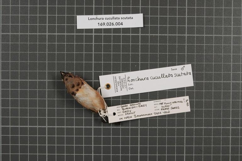 | Keywords: Naturalis Biodiversity Center - RMNH.AVES.85905 2 - Lonchura cucullata scutata (Heuglin, 1863) - Estrildidae - bird skin specimen.jpeg artwork Dimensions artwork Document type Estrildidae Lonchura Individual count 1 Infraspecific epithet scutata Infraspecific rank Institution Naturalis Kind of unit artwork Kind of unit specimen skin Life stage immature South Africa North Western Natal Drakensberg Foothillls near van Reenen Medium artwork Nomenclatural code Occurrence ID page Other fields Other versions artwork Permission license Naturalis donation CC-0 Publication location Scientific name Lonchura cucullata scutata Heuglin 1863 Scientific name authorship Heuglin 1863 male Source url http //bioportal naturalis nl Specific epithet cucullata State or province North Western Natal Drakensberg Foothillls near van Reenen Subject keywords artwork Subject keywords publication Title artwork Title publication Type status Uploaded with GWToolset Naturalis_Biodiversity_Center_-_RMNH AVES 85905_2_-_Lonchura_cucullata_scutata_ Heuglin _1863 _-_Estrildidae_-_bird_skin_specimen http //medialib naturalis nl/file/id/RMNH AVES 85905_2/format/large Media donated by Naturalis Biodiversity Center Songbird specimens at Naturalis Biodiversity Center Lonchura cucullata museum specimens |