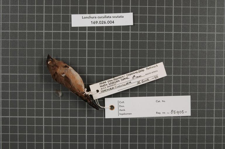 | Keywords: Naturalis Biodiversity Center - RMNH.AVES.85905 1 - Lonchura cucullata scutata (Heuglin, 1863) - Estrildidae - bird skin specimen.jpeg artwork Dimensions artwork Document type Estrildidae Lonchura Individual count 1 Infraspecific epithet scutata Infraspecific rank Institution Naturalis Kind of unit artwork Kind of unit specimen skin Life stage immature South Africa North Western Natal Drakensberg Foothillls near van Reenen Medium artwork Nomenclatural code Occurrence ID page Other fields Other versions artwork Permission license Naturalis donation CC-0 Publication location Scientific name Lonchura cucullata scutata Heuglin 1863 Scientific name authorship Heuglin 1863 male Source url http //bioportal naturalis nl Specific epithet cucullata State or province North Western Natal Drakensberg Foothillls near van Reenen Subject keywords artwork Subject keywords publication Title artwork Title publication Type status Uploaded with GWToolset Naturalis_Biodiversity_Center_-_RMNH AVES 85905_1_-_Lonchura_cucullata_scutata_ Heuglin _1863 _-_Estrildidae_-_bird_skin_specimen http //medialib naturalis nl/file/id/RMNH AVES 85905_1/format/large Media donated by Naturalis Biodiversity Center Songbird specimens at Naturalis Biodiversity Center Lonchura cucullata museum specimens |