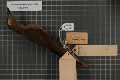 | Keywords: Naturalis Biodiversity Center - RMNH.AVES.130493 1 - Colluricincla megarhyncha hybrida (Meise, 1929) - Pachycephalidae - bird skin specimen.jpeg artwork Dimensions artwork Document type Pachycephalidae Colluricincla Individual count 1 Infraspecific epithet hybrida Infraspecific rank Institution Naturalis Kind of unit artwork Kind of unit specimen skin Life stage Medium artwork Nomenclatural code Occurrence ID page Other fields Other versions artwork Permission license Naturalis donation CC-0 Publication location Scientific name Colluricincla megarhyncha hybrida Meise 1929 Scientific name authorship Meise 1929 male Source url http //bioportal naturalis nl Specific epithet megarhyncha State or province Subject keywords artwork Subject keywords publication Title artwork Title publication Type status Uploaded with GWToolset Naturalis_Biodiversity_Center_-_RMNH AVES 130493_1_-_Colluricincla_megarhyncha_hybrida_ Meise _1929 _-_Pachycephalidae_-_bird_skin_specimen http //medialib naturalis nl/file/id/RMNH AVES 130493_1/format/large Media donated by Naturalis Biodiversity Center Songbird specimens at Naturalis Biodiversity Center Colluricincla Colluricincla megarhyncha |