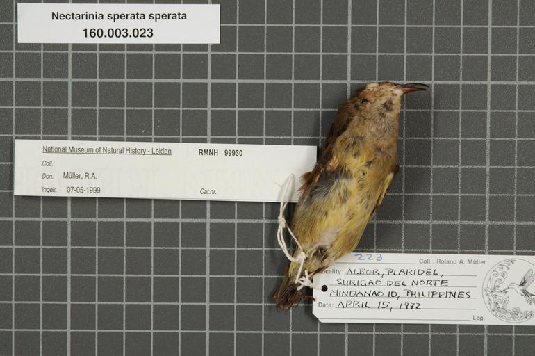Keywords: Naturalis Biodiversity Center - RMNH.AVES.99930 2 - Nectarinia sperata sperata (Linnaeus, 1766) - Nectariniidae - bird skin specimen.jpeg artwork Dimensions artwork Document type Nectariniidae Nectarinia Individual count 1 Infraspecific epithet sperata Infraspecific rank Institution Naturalis Kind of unit artwork Kind of unit specimen skin Life stage Philippines Mindanao Id Surigao del Norte Plaridel Albor Medium artwork Nomenclatural code Occurrence ID page Other fields Other versions artwork Permission license Naturalis donation CC-0 Publication location Scientific name Nectarinia sperata sperata Linnaeus 1766 Scientific name authorship Linnaeus 1766 female Source url http //bioportal naturalis nl Specific epithet sperata State or province Subject keywords artwork Subject keywords publication Title artwork Title publication Type status Uploaded with GWToolset Naturalis_Biodiversity_Center_-_RMNH AVES 99930_2_-_Nectarinia_sperata_sperata_ Linnaeus _1766 _-_Nectariniidae_-_bird_skin_specimen http //medialib naturalis nl/file/id/RMNH AVES 99930_2/format/large Media donated by Naturalis Biodiversity Center Songbird specimens at Naturalis Biodiversity Center Leptocoma sperata