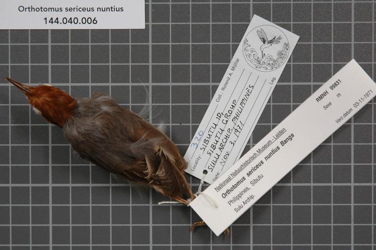 | Keywords: Naturalis Biodiversity Center - RMNH.AVES.99831 1 - Orthotomus sericeus nuntius Bangs, 1922 - Sylviidae - bird skin specimen.jpeg artwork Dimensions artwork Document type Sylviidae Orthotomus Individual count 1 Infraspecific epithet nuntius Infraspecific rank Institution Naturalis Kind of unit artwork Kind of unit specimen skin Life stage Philippines Sulu Archip Sibutu group Sibutu Id Medium artwork Nomenclatural code Occurrence ID page Other fields Other versions artwork Permission license Naturalis donation CC-0 Publication location Scientific name Orthotomus sericeus nuntius Bangs 1922 Scientific name authorship Bangs 1922 male Source url http //bioportal naturalis nl Specific epithet sericeus State or province Subject keywords artwork Subject keywords publication Title artwork Title publication Type status Uploaded with GWToolset Naturalis_Biodiversity_Center_-_RMNH AVES 99831_1_-_Orthotomus_sericeus_nuntius_Bangs _1922_-_Sylviidae_-_bird_skin_specimen http //medialib naturalis nl/file/id/RMNH AVES 99831_1/format/large Media donated by Naturalis Biodiversity Center Songbird specimens at Naturalis Biodiversity Center Orthotomus sericeus |