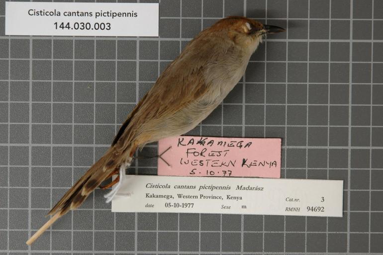 | Keywords: Naturalis Biodiversity Center - RMNH.AVES.94692 1 - Cisticola cantans pictipennis Madarász, 1904 - Sylviidae - bird skin specimen.jpeg artwork Dimensions artwork Document type Sylviidae Cisticola Individual count 1 Infraspecific epithet pictipennis Infraspecific rank Institution Naturalis Kind of unit artwork Kind of unit specimen skin Life stage Kenya Western Province Kakamega Forest Medium artwork Nomenclatural code Occurrence ID page Other fields Other versions artwork Permission license Naturalis donation CC-0 Publication location Scientific name Cisticola cantans pictipennis Madarász 1904 Scientific name authorship Madarász 1904 male Source url http //bioportal naturalis nl Specific epithet cantans State or province Western Province Kakamega Forest Subject keywords artwork Subject keywords publication Title artwork Title publication Type status Uploaded with GWToolset Naturalis_Biodiversity_Center_-_RMNH AVES 94692_1_-_Cisticola_cantans_pictipennis_Madarász _1904_-_Sylviidae_-_bird_skin_specimen http //medialib naturalis nl/file/id/RMNH AVES 94692_1/format/large Media donated by Naturalis Biodiversity Center Songbird specimens at Naturalis Biodiversity Center Cisticola cantans museum specimens |