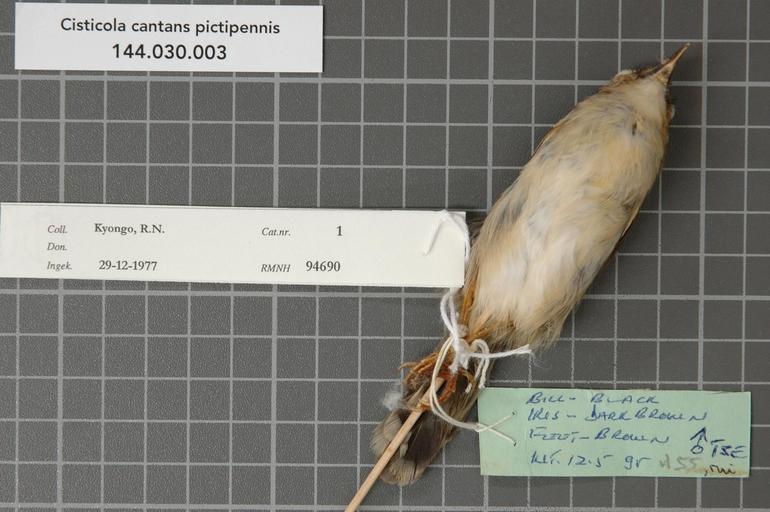 | Keywords: Naturalis Biodiversity Center - RMNH.AVES.94690 2 - Cisticola cantans pictipennis Madarász, 1904 - Sylviidae - bird skin specimen.jpeg artwork Dimensions artwork Document type Sylviidae Cisticola Individual count 1 Infraspecific epithet pictipennis Infraspecific rank Institution Naturalis Kind of unit artwork Kind of unit specimen skin Life stage Kenya Machakos Kilungu Hills Kikoko Medium artwork Nomenclatural code Occurrence ID page Other fields Other versions artwork Permission license Naturalis donation CC-0 Publication location Scientific name Cisticola cantans pictipennis Madarász 1904 Scientific name authorship Madarász 1904 male Source url http //bioportal naturalis nl Specific epithet cantans State or province Machakos Kilungu Hills Subject keywords artwork Subject keywords publication Title artwork Title publication Type status Uploaded with GWToolset Naturalis_Biodiversity_Center_-_RMNH AVES 94690_2_-_Cisticola_cantans_pictipennis_Madarász _1904_-_Sylviidae_-_bird_skin_specimen http //medialib naturalis nl/file/id/RMNH AVES 94690_2/format/large Media donated by Naturalis Biodiversity Center Songbird specimens at Naturalis Biodiversity Center Cisticola cantans museum specimens |