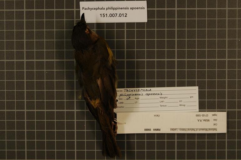 | Keywords: Naturalis Biodiversity Center - RMNH.AVES.99880 1 - Pachycephala philippinensis apoensis (Mearns, 1905) - Pachycephalidae - bird skin specimen.jpeg artwork Dimensions artwork Document type Pachycephalidae Pachycephala Individual count 1 Infraspecific epithet apoensis Infraspecific rank Institution Naturalis Kind of unit artwork Kind of unit specimen skin Life stage Philippines Mindanao Lanao del Sur Lumba-Bayabao Piagayungan Saronayan Medium artwork Nomenclatural code Occurrence ID page Other fields Other versions artwork Permission license Naturalis donation CC-0 Publication location Scientific name Pachycephala philippinensis apoensis Mearns 1905 Scientific name authorship Mearns 1905 male Source url http //bioportal naturalis nl Specific epithet philippinensis State or province Mindanao Lanao del Sur Lumba-Bayabao Subject keywords artwork Subject keywords publication Title artwork Title publication Type status Uploaded with GWToolset Naturalis_Biodiversity_Center_-_RMNH AVES 99880_1_-_Pachycephala_philippinensis_apoensis_ Mearns _1905 _-_Pachycephalidae_-_bird_skin_specimen http //medialib naturalis nl/file/id/RMNH AVES 99880_1/format/large Media donated by Naturalis Biodiversity Center Songbird specimens at Naturalis Biodiversity Center Pachycephala philippinensis apoensis |