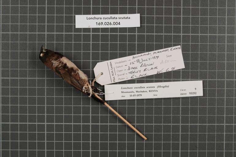 | Keywords: Naturalis Biodiversity Center - RMNH.AVES.93252 1 - Lonchura cucullata scutata (Heuglin, 1863) - Estrildidae - bird skin specimen.jpeg artwork Dimensions artwork Document type Estrildidae Lonchura Individual count 1 Infraspecific epithet scutata Infraspecific rank Institution Naturalis Kind of unit artwork Kind of unit specimen skin Life stage Kenya Machakos Muumandu Medium artwork Nomenclatural code Occurrence ID page Other fields Other versions artwork Permission license Naturalis donation CC-0 Publication location Scientific name Lonchura cucullata scutata Heuglin 1863 Scientific name authorship Heuglin 1863 Source url http //bioportal naturalis nl Specific epithet cucullata State or province Machakos Subject keywords artwork Subject keywords publication Title artwork Title publication Type status Uploaded with GWToolset Naturalis_Biodiversity_Center_-_RMNH AVES 93252_1_-_Lonchura_cucullata_scutata_ Heuglin _1863 _-_Estrildidae_-_bird_skin_specimen http //medialib naturalis nl/file/id/RMNH AVES 93252_1/format/large Media donated by Naturalis Biodiversity Center Songbird specimens at Naturalis Biodiversity Center Lonchura cucullata museum specimens |