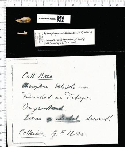 | Keywords: Naturalis Biodiversity Center - RMNH.MAM.12355.a lat - Glossophaga soricina soricina - skull.jpeg artwork Dimensions artwork Document type Glossophaga Individual count 1 Infraspecific epithet soricina Infraspecific rank Institution Naturalis Kind of unit artwork Kind of unit specimen skull Life stage Orange Grove Estate Trinidad Medium artwork Nomenclatural code Occurrence ID page Other fields Other versions artwork Permission license Naturalis donation CC-0 Publication location Scientific name Glossophaga soricina soricina Scientific name authorship female Source url http //bioportal naturalis nl Specific epithet soricina State or province Subject keywords artwork Subject keywords publication Title artwork Title publication Type status Uploaded with GWToolset Naturalis_Biodiversity_Center_-_RMNH MAM 12355 a_lat_-_Glossophaga_soricina_soricina_-_skull http //medialib naturalis nl/file/id/RMNH MAM 12355 a_lat/format/large Media donated by Naturalis Biodiversity Center Mammals at Naturalis from the Rijksmuseum van Natuurlijke Historie Glossophaga soricina Glossophaga longirostris |