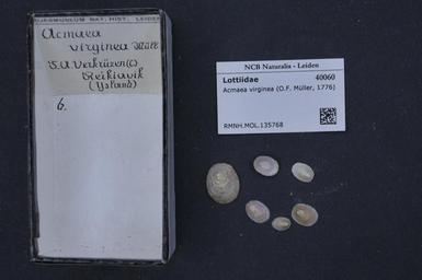 | Keywords: Naturalis Biodiversity Center - RMNH.MOL.135768 - Tectura virginea (Müller, 1776) - Lottiidae - Mollusc shell.jpeg artwork Dimensions artwork Document type Lottiidae Tectura Individual count Infraspecific epithet Infraspecific rank Institution Naturalis Kind of unit artwork Kind of unit specimen shell Life stage Medium artwork Nomenclatural code Source institute Leiden Scale the width of the text on the species/QR-code label is 38 mm Occurrence ID page Other fields Other versions artwork Permission license Naturalis donation CC-0 Mollusca Publication location Scientific name Tectura virginea Müller 1776 Scientific name authorship Müller 1776 Source url http //bioportal naturalis nl Specific epithet virginea State or province Subject keywords artwork Subject keywords publication Title artwork Title publication Type status Uploaded with GWToolset Naturalis_Biodiversity_Center_-_RMNH MOL 135768_-_Tectura_virginea_ Müller _1776 _-_Lottiidae_-_Mollusc_shell http //medialib naturalis nl/file/id/RMNH MOL 135768/format/large Molluscs at Naturalis from the Rijksmuseum van Natuurlijke Historie Media donated by Naturalis Biodiversity Center Tectura virginea |