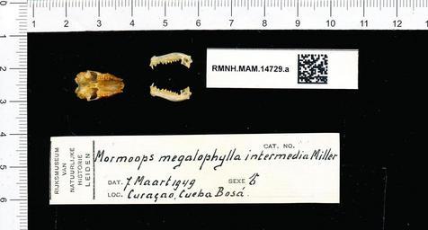 | Keywords: Naturalis Biodiversity Center - RMNH.MAM.14729.a pal - Mormoops megalophylla intermedia - skull.jpeg artwork Dimensions artwork Document type Mormoops Individual count 1 Infraspecific epithet intermedia Infraspecific rank Institution Naturalis Kind of unit artwork Kind of unit specimen skull Life stage Curaçao Cueba Bosá Medium artwork Nomenclatural code Occurrence ID page Other fields Other versions artwork Permission license Naturalis donation CC-0 Publication location Scientific name Mormoops megalophylla intermedia Scientific name authorship male Source url http //bioportal naturalis nl Specific epithet megalophylla State or province Subject keywords artwork Subject keywords publication Title artwork Title publication Type status Uploaded with GWToolset Naturalis_Biodiversity_Center_-_RMNH MAM 14729 a_pal_-_Mormoops_megalophylla_intermedia_-_skull http //medialib naturalis nl/file/id/RMNH MAM 14729 a_pal/format/large Media donated by Naturalis Biodiversity Center Mammals at Naturalis from the Rijksmuseum van Natuurlijke Historie Mormoops megalophylla Mormoops |