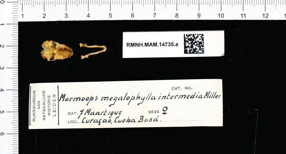 | Keywords: Naturalis Biodiversity Center - RMNH.MAM.14735.a pal - Mormoops megalophylla intermedia - skull.jpeg artwork Dimensions artwork Document type Mormoops Individual count 1 Infraspecific epithet intermedia Infraspecific rank Institution Naturalis Kind of unit artwork Kind of unit specimen skull Life stage Curaçao Cueba Bosá Medium artwork Nomenclatural code Occurrence ID page Other fields Other versions artwork Permission license Naturalis donation CC-0 Publication location Scientific name Mormoops megalophylla intermedia Scientific name authorship female Source url http //bioportal naturalis nl Specific epithet megalophylla State or province Subject keywords artwork Subject keywords publication Title artwork Title publication Type status Uploaded with GWToolset Naturalis_Biodiversity_Center_-_RMNH MAM 14735 a_pal_-_Mormoops_megalophylla_intermedia_-_skull http //medialib naturalis nl/file/id/RMNH MAM 14735 a_pal/format/large Media donated by Naturalis Biodiversity Center Mammals at Naturalis from the Rijksmuseum van Natuurlijke Historie Mormoops megalophylla Mormoops |
