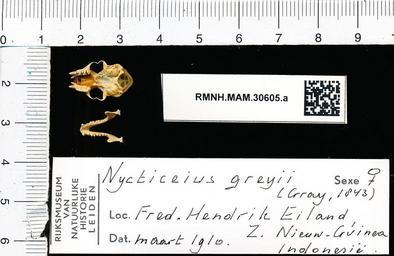 | Keywords: Naturalis Biodiversity Center - RMNH.MAM.30605.a pal - Scotorepens greyii - skull.jpeg artwork Dimensions artwork Document type Scotorepens Individual count 1 Infraspecific epithet Infraspecific rank Institution Naturalis Kind of unit artwork Kind of unit specimen skull Life stage Fred Hendrik Eiland Z Nieuw Guinea Indonesia Medium artwork Nomenclatural code Occurrence ID page Other fields Other versions artwork Permission license Naturalis donation CC-0 Publication location Scientific name Scotorepens greyii Scientific name authorship female Source url http //bioportal naturalis nl Specific epithet greyii State or province Subject keywords artwork Subject keywords publication Title artwork Title publication Type status Uploaded with GWToolset Naturalis_Biodiversity_Center_-_RMNH MAM 30605 a_pal_-_Scotorepens_greyii_-_skull http //medialib naturalis nl/file/id/RMNH MAM 30605 a_pal/format/large Media donated by Naturalis Biodiversity Center Mammals at Naturalis from the Rijksmuseum van Natuurlijke Historie Scotorepens greyii Scotorepens |