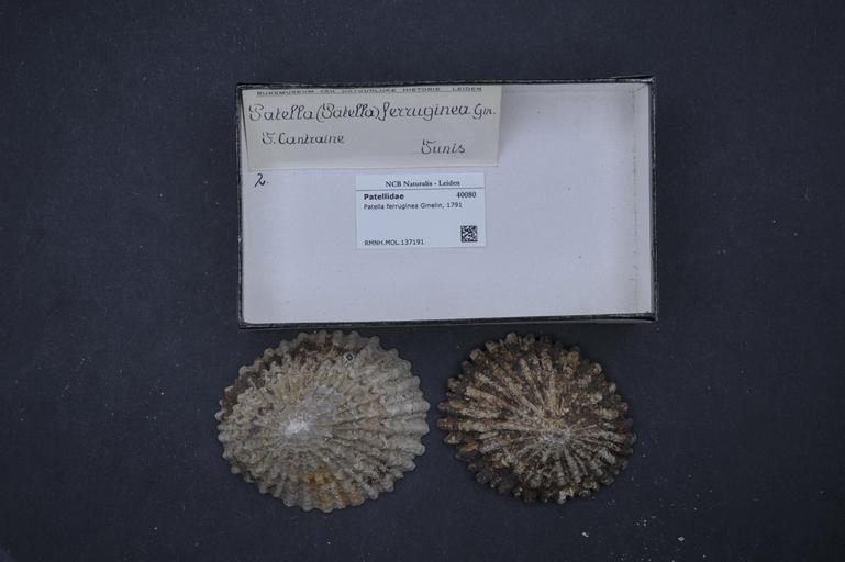 Keywords: Naturalis Biodiversity Center - RMNH.MOL.137191 - Patella ferruginea Gmelin, 1791 - Patellidae - Mollusc shell.jpeg artwork Dimensions artwork Document type Patellidae subfamily Patellinae Patella Individual count Infraspecific epithet Infraspecific rank Institution Naturalis Kind of unit artwork Kind of unit specimen shell Life stage Medium artwork Nomenclatural code Source institute Leiden Scale the width of the text on the species/QR-code label is 38 mm Occurrence ID page Other fields Other versions artwork Permission license Naturalis donation CC-0 Mollusca Publication location Scientific name Patella ferruginea Gmelin 1791 Scientific name authorship Gmelin 1791 Source url http //bioportal naturalis nl Specific epithet ferruginea State or province Subject keywords artwork Subject keywords publication Title artwork Title publication Type status Uploaded with GWToolset Naturalis_Biodiversity_Center_-_RMNH MOL 137191_-_Patella_ferruginea_Gmelin _1791_-_Patellidae_-_Mollusc_shell http //medialib naturalis nl/file/id/RMNH MOL 137191/format/large Molluscs at Naturalis from the Rijksmuseum van Natuurlijke Historie Media donated by Naturalis Biodiversity Center Patella mollusc Patella ferruginea |