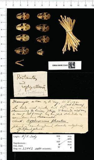 | Keywords: Naturalis Biodiversity Center - RMNH.MAM.33442 pal - Chaerephon plicatus - skull.jpeg artwork Dimensions artwork Document type Chaerephon Individual count 8 Infraspecific epithet Infraspecific rank Institution Naturalis Kind of unit artwork Kind of unit specimen skull Life stage Dramaga 10 km Z can Buitenzorg W Java Indonesia Medium artwork Nomenclatural code Occurrence ID page Other fields Other versions artwork Permission license Naturalis donation CC-0 Publication location Scientific name Chaerephon plicatus Scientific name authorship Source url http //bioportal naturalis nl Specific epithet plicatus State or province Subject keywords artwork Subject keywords publication Title artwork Title publication Type status Uploaded with GWToolset Naturalis_Biodiversity_Center_-_RMNH MAM 33442_pal_-_Chaerephon_plicatus_-_skull http //medialib naturalis nl/file/id/RMNH MAM 33442_pal/format/large Media donated by Naturalis Biodiversity Center Mammals at Naturalis from the Rijksmuseum van Natuurlijke Historie Chaerephon plicatus |