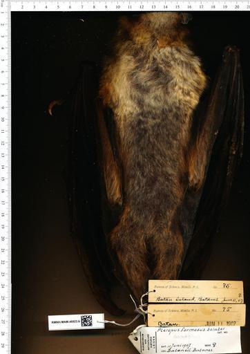 | Keywords: Naturalis Biodiversity Center - RMNH.MAM.45923.b dor - Pteropus dasymallus formosus - skin.jpeg artwork Dimensions artwork Document type Pteropus Individual count 1 Infraspecific epithet formosus Infraspecific rank Institution Naturalis Kind of unit artwork Kind of unit specimen skin Life stage breeding Batan eil Batanes Medium artwork Nomenclatural code Occurrence ID page Other fields Other versions artwork Permission license Naturalis donation CC-0 Publication location Scientific name Pteropus dasymallus formosus Scientific name authorship female Source url http //bioportal naturalis nl Specific epithet dasymallus State or province Subject keywords artwork Subject keywords publication Title artwork Title publication Type status Uploaded with GWToolset Naturalis_Biodiversity_Center_-_RMNH MAM 45923 b_dor_-_Pteropus_dasymallus_formosus_-_skin http //medialib naturalis nl/file/id/RMNH MAM 45923 b_dor/format/large Mammals at Naturalis from the Rijksmuseum van Natuurlijke Historie Media donated by Naturalis Biodiversity Center Pteropus dasymallus Pteropus |