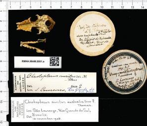 | Keywords: Naturalis Biodiversity Center - RMNH.MAM.5001.a pal - Chrotopterus auritus - skull.jpeg artwork Dimensions artwork Document type Chrotopterus Individual count 1 Infraspecific epithet Infraspecific rank Institution Naturalis Kind of unit artwork Kind of unit specimen skull Life stage São Lourenço Rio Grande do Sul Brazilië Medium artwork Nomenclatural code Occurrence ID page Other fields Other versions artwork Permission license Naturalis donation CC-0 Publication location Scientific name Chrotopterus auritus Scientific name authorship female Source url http //bioportal naturalis nl Specific epithet auritus State or province Subject keywords artwork Subject keywords publication Title artwork Title publication Type status Uploaded with GWToolset Naturalis_Biodiversity_Center_-_RMNH MAM 5001 a_pal_-_Chrotopterus_auritus_-_skull http //medialib naturalis nl/file/id/RMNH MAM 5001 a_pal/format/large Mammals at Naturalis from the Rijksmuseum van Natuurlijke Historie Media donated by Naturalis Biodiversity Center Chrotopterus auritus Chrotopterus |
