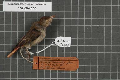 | Keywords: Naturalis Biodiversity Center - RMNH.AVES.132327 1 - Dicaeum trochileum trochileum Sparrman, 1789 - Dicaeidae - bird skin specimen.jpeg artwork Dimensions artwork Document type Dicaeidae Dicaeum Individual count 1 Infraspecific epithet trochileum Infraspecific rank Institution Naturalis Kind of unit artwork Kind of unit specimen skin Life stage Indonesia Java Buitenzorg Dramaga Medium artwork Nomenclatural code Occurrence ID page Other fields Other versions artwork Permission license Naturalis donation CC-0 Publication location Scientific name Dicaeum trochileum trochileum Sparrman 1789 Scientific name authorship Sparrman 1789 female Source url http //bioportal naturalis nl Specific epithet trochileum State or province Subject keywords artwork Subject keywords publication Title artwork Title publication Type status Uploaded with GWToolset Naturalis_Biodiversity_Center_-_RMNH AVES 132327_1_-_Dicaeum_trochileum_trochileum_Sparrman _1789_-_Dicaeidae_-_bird_skin_specimen http //medialib naturalis nl/file/id/RMNH AVES 132327_1/format/large Media donated by Naturalis Biodiversity Center Songbird specimens at Naturalis Biodiversity Center Dicaeum trochileum Dicaeum |